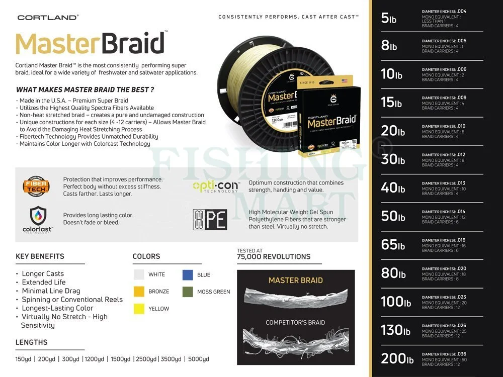 Master Braid zachowując swoją wytrzymałość, niską rozciągliwość, kształt, kolor rzut za rzutem.