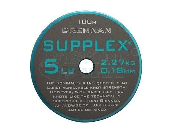 Bardzo dobrej klasy żyłka, idealna średnica i miękkość sprawiają, że żyłki Drennan Supplex mogą być stosowane zarówno do budowy zestawów na tyczkę jak i do wszelkich metod połowu z kołowrotkiem.