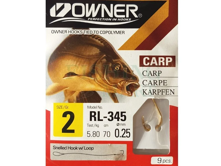 Profesjonalne zestawy haczyków z przyponami. Wykorzystano haczyki z naszej oferty i doskonałą żyłkę OWNER BROAD. Model RL z przyponem 70 cm.