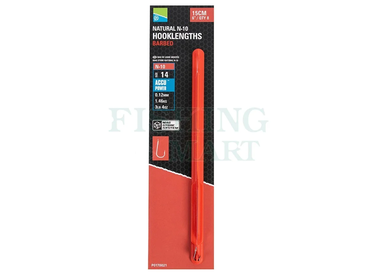 Haczyki Natural N-10 są używane na przyponach z żyłki Accu Power, aby stworzyć dokładne i niezawodne przypony do użycia z wieloma przynętami, w tym z małymi pinkami, białymi robakami, casterami oraz z ochotkami i jokersami.